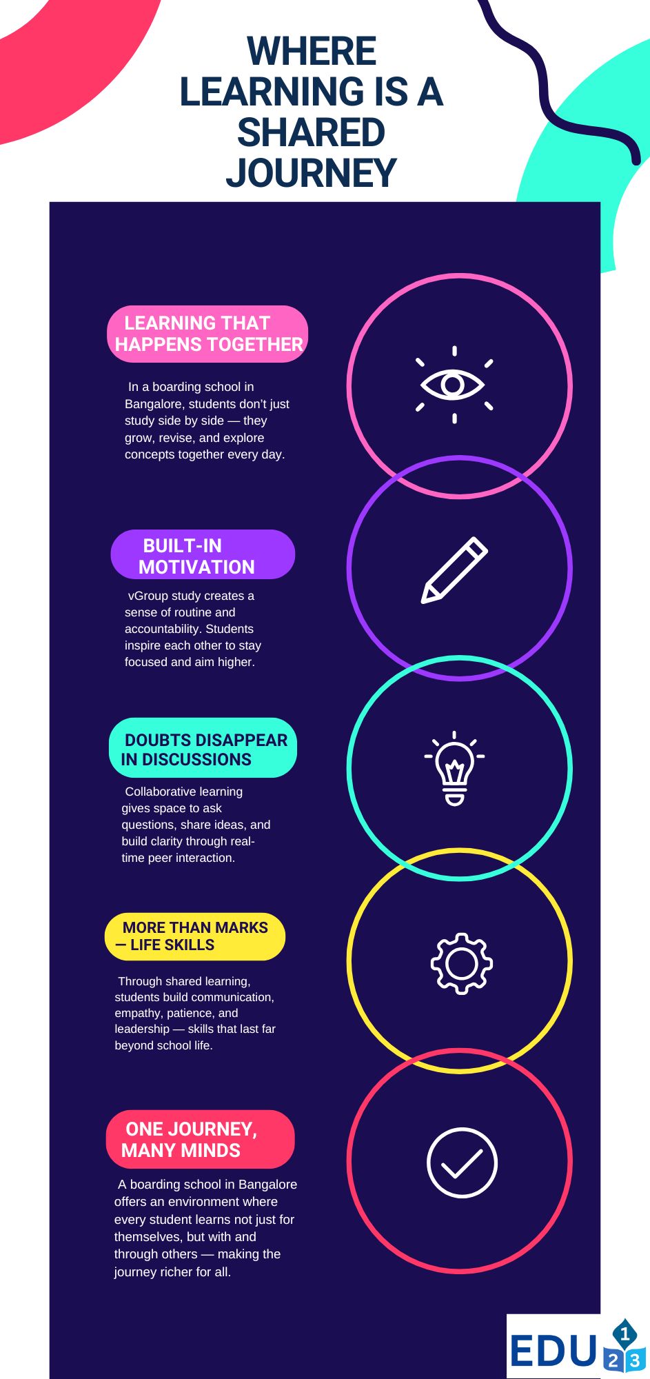 In residential schools, learning isn’t a solo journey — it’s a shared experience shaped by collaboration, discussion, and community. This description explores how peer learning, group projects, mentorship, and interactive classrooms help students grow together. FOR MORE INFO http://www.edu123.in/category/boarding-schools-in-bengaluru