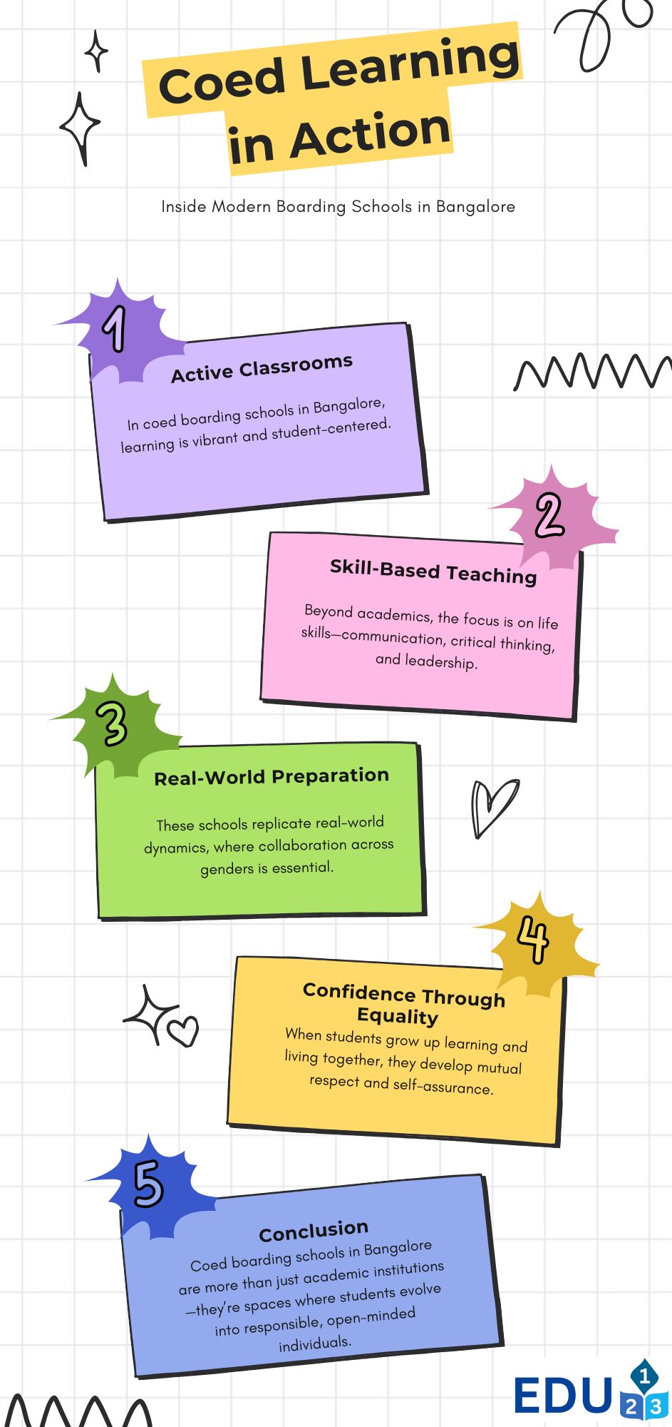 Coed learning environments promote balanced growth, healthy competition, and stronger communication skills among students. In coed boarding schools in Bangalore, boys and girls learn together in a structured setting that encourages mutual respect and teamwork.